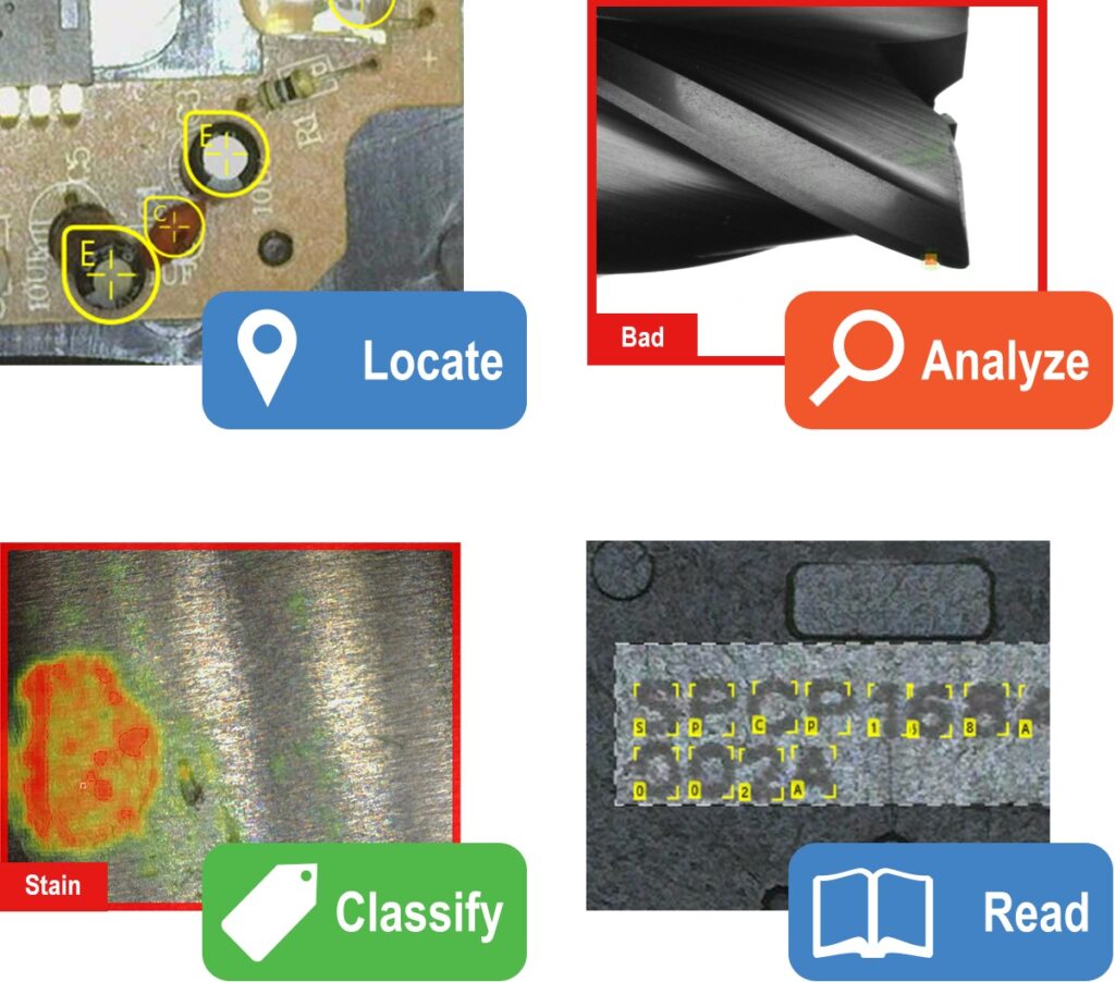 Cognex AI: Cognexin neuroverkkopohjaiset konenäkötyökalut auttavat ratkaisemaan sovelluksia joihin ennen ei ollut mahdollista tarjota ratkaisuja. Cognexin AI työkaluja on mahdullista käyttää In-Sight älykameroissa, In-sight 3D älykameroissa sekä VisionPro ohjelmiston kanssa. Tutustu AI vaihtoehtoihin tästä.